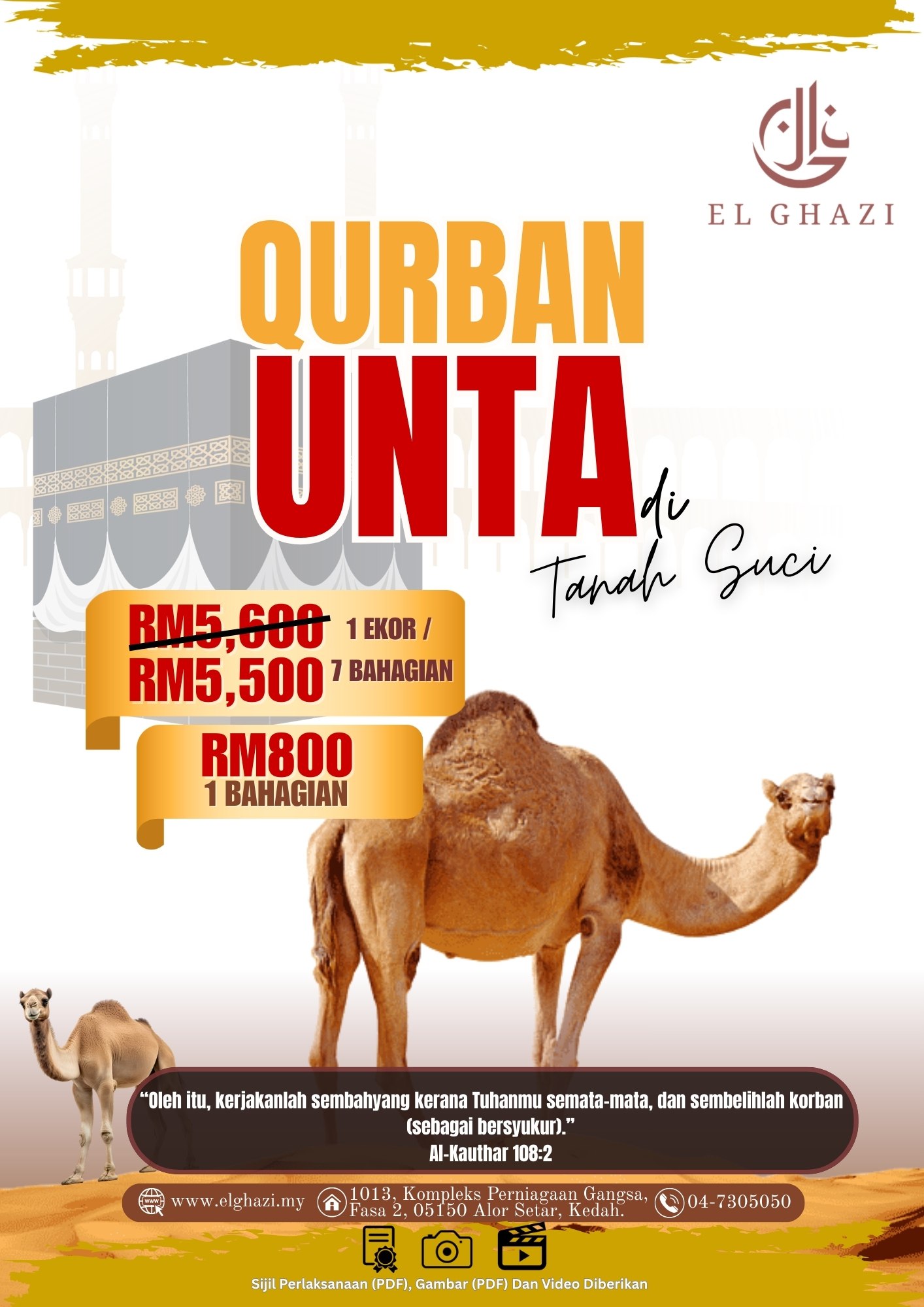 Alhamdulillah, seronoknya saya rasa sebab dapat buat korban di Mekah ni ustaz untuk ayah saya. Dah lama teringin nak buat macam ni. Terima kasih ustaz bantu memudahkan urusan saya. Perkhidmatan El Ghazi ni memang terbaik sangat2. Ustaz jawab & bagi info semua yg sy tanya. Puas hati sy dapat video perlaksanaan macam ni. Sy rekemen kat kawan2 sy nanti.